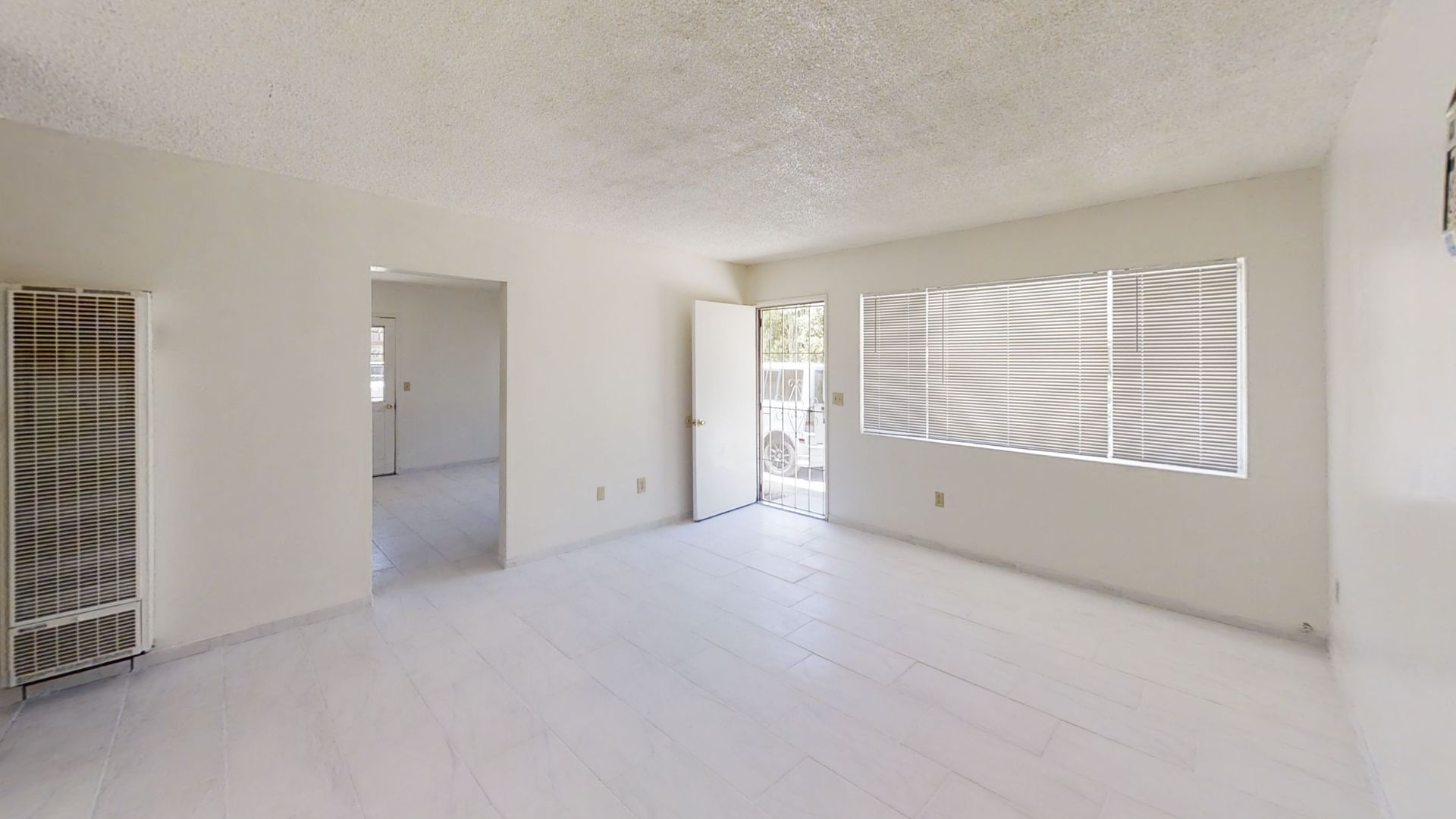 Single family unit. 2 bedroom 1 bathroom 800 sq. ft. of living space with side gated yard. This home features tile floors throughout, range, wall heater, ceiling fans and window A/C. Utilities Included monthly -Water, sewer and trash. Close to stores and freeway. Attached 1 car garage. No Pets allowed.