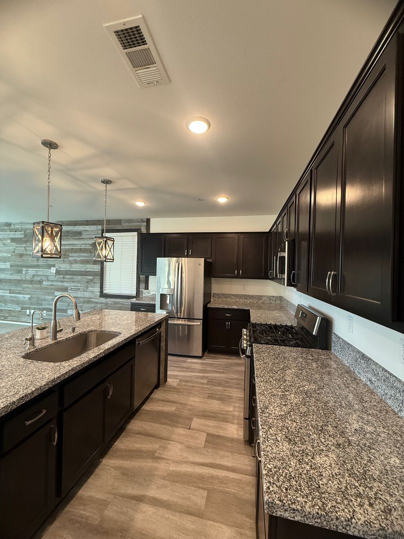 Welcome to this beautiful 4-bedroom, 3-bathroom home located in the vibrant Sundance Community HOA! Close to the community park and pool, this two-story home features a range of modern amenities, including a reverse osmosis water filtering system, water softener, refrigerator, dishwasher, microwave, and garbage disposal in the kitchen, complemented by elegant stone counters. The living areas feature durable vinyl plank flooring, while the upstairs is carpeted for added comfort. The home is equipped with central HVAC for year-round comfort. The property also includes a covered patio, perfect for outdoor dining or relaxation. The fenced yard with an automatic sprinkler system features drought-tolerant landscaping and a grassy back yard, offering a perfect blend of convenience and sustainability. The attached 2-car garage comes with an automatic opener, and there are washer/dryer hookups for your convenience. This home is a perfect blend of comfort, functionality, and style. HOA is included in the lease. Tenant is responsible for ALL utilities. 2 Dog max on approval.